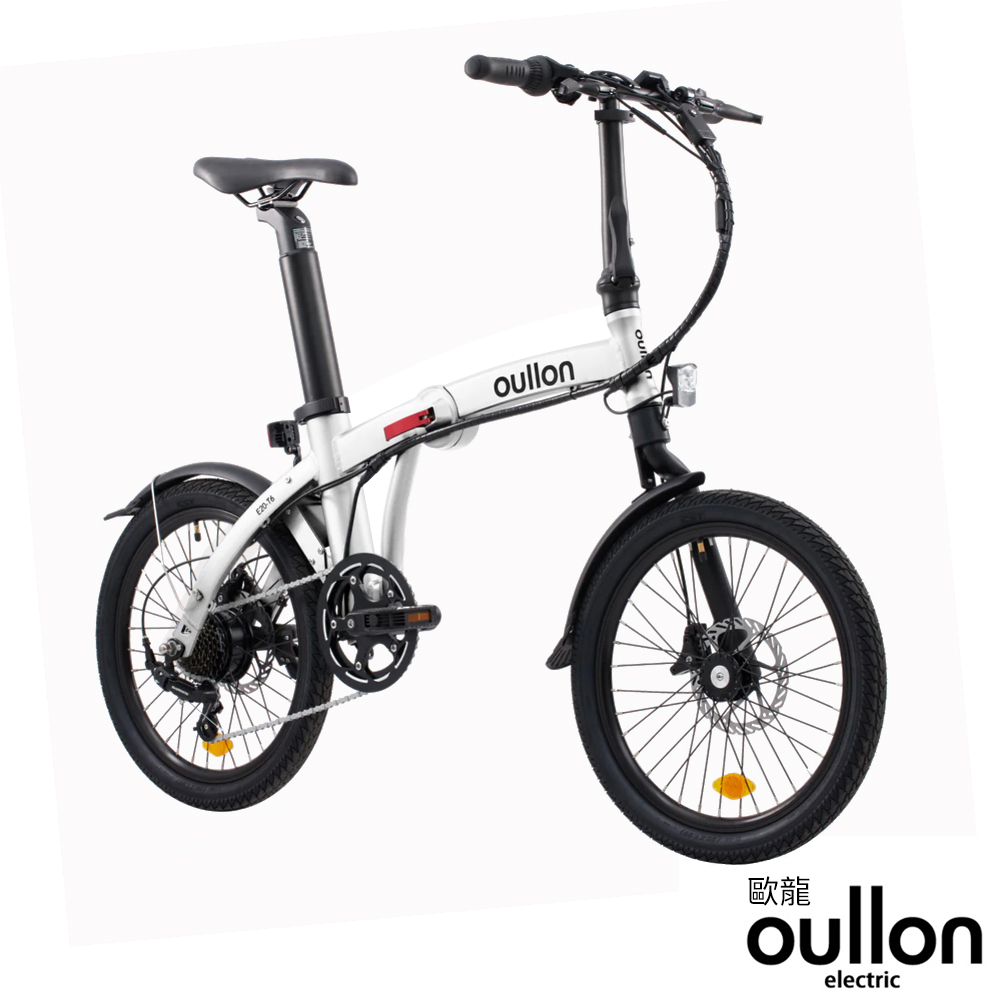 oullon 歐龍E20-T6 20吋7速5段電輔 前後同步碟煞電動輔助折疊自行車 經典白