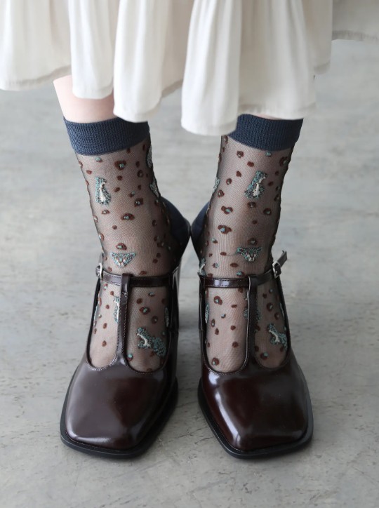 商品名 / | 日本 Tabio 豹與豹紋透膚中筒襪 14 Charcoal Gray |