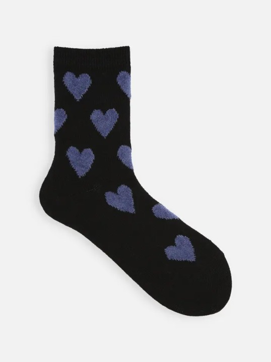 日本 Tabio 混羊毛絨絨大愛心愛心中筒襪 13 Black