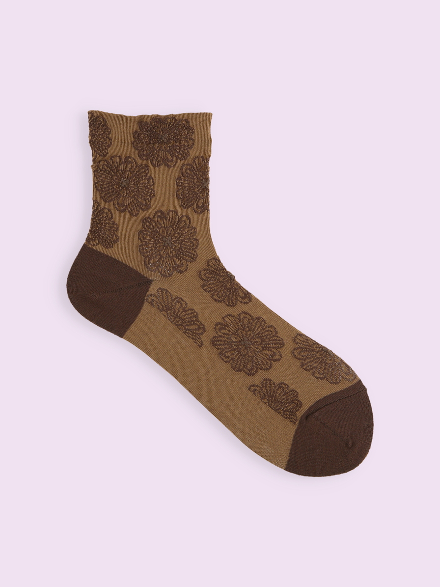 【日本 Tabio】 細緻花兒毛混紡薄中筒襪 22 Tea
