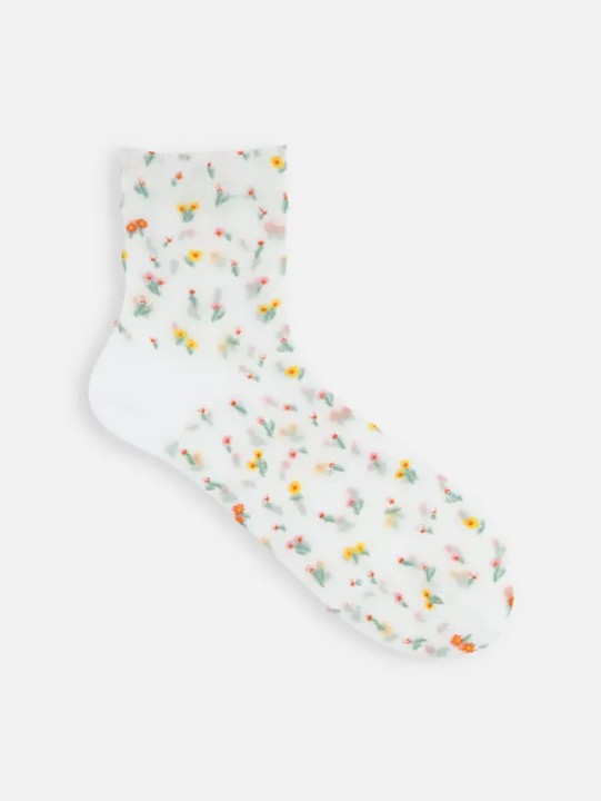 日本 Tabio 繽紛小花輕透感中筒襪 01 Off White
