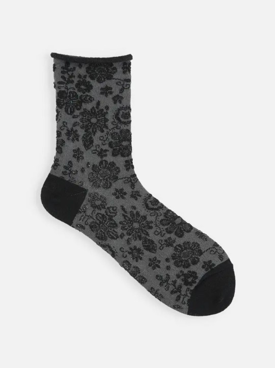 商品名 / | 日本 Tabio 亞麻混紡立體花兒涼感中筒襪 12 Black |