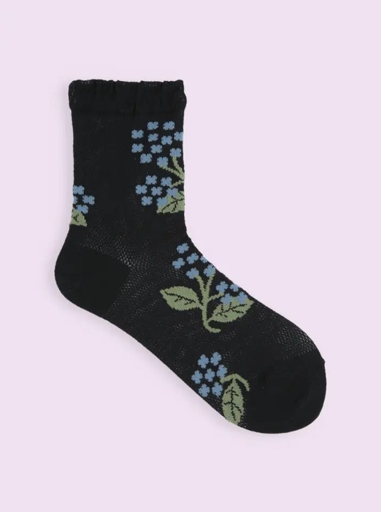 商品名 / | 【日本 Tabio】 清涼織紋繡球花網眼中筒襪 12 Black |