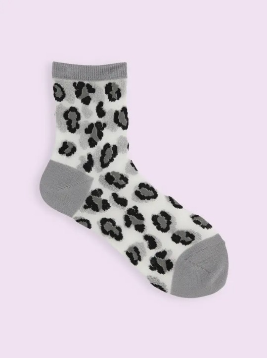 商品描述 | 【日本 Tabio】 閃閃豹紋薄紗中筒襪 11 Grey:【關於日本Tabio】日本專業襪子品牌,目標是創造像第二層皮膚一樣的襪子,舒服的襪款甚至讓你忘記穿著它們,從運動襪、絲襪到 |