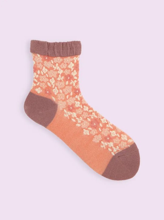 商品名 / | 【日本 Tabio】 溫暖花束風格浮織中筒襪 31 Dull Pink |