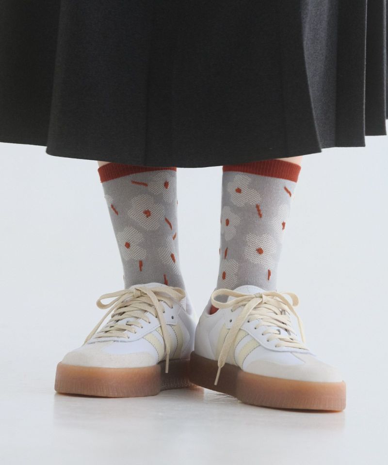 日本 Tabio x Wpc.Patterns Merry Flower浮織立體低筒襪 42 Red