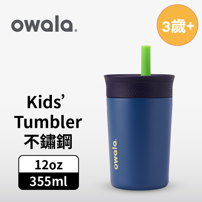 商品描述 | 【Owala】Kids' Tumbler|冰樂藍莓|兒童三層不鏽鋼矽膠吸管水壺-355ml:※可彎曲食品級矽膠彈性飲嘴,保護口腔軟吸嘴口,各種角度喝水都easy※BPAFree耐酸鹼、冷熱皆宜, |