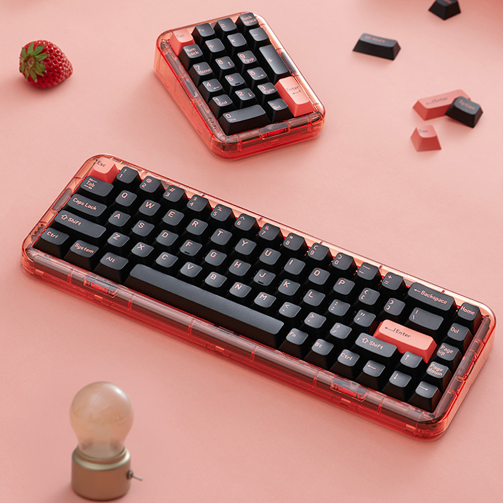 內容簡介 MelGeek Mojo68 讓每個人都能擁有一把好用、好看又好玩的機械式鍵盤MelGeek Mojo68 黑鴿子透明機械鍵盤採用 68 鍵 ANSI 無線機械鍵盤。內置 Poron 吸音棉和矽膠墊靜音式結構設計,提供令人愉悅的打字音效,流暢的連接響應能力使 Mojo68 Plastic 成為你的工作和遊戲的完美選擇。滿滿的水果色桌面,個性桌面我來做主桌面新顏值,性能新物種。顏值是外在需求,性能是內在實力。三模連接,輕鬆跨設備使用2.4 G 回報速率達 1000 Hz。藍牙 5.1 可同時連接 8 台設備,可以輕鬆連接,從桌面延伸至電腦、投影機、遊戲機,穩定傳輸,工作娛樂不耽誤。靜音式結構設計,桌面性能新物種內嵌入 Poron 吸音棉、開關墊、矽膠墊等,提供彈性打字回彈感覺和減弱的打字聲音。這種先進的 Poron 夾層設計,降低了噪音並創造一種舒適和諧的打字體驗。自由切換軸體與鍵帽支援軸體熱插拔,手感聲音自由定義,搭配原廠高度 ABS 雙色注塑鍵帽,字符鮮亮,經久耐用。全系統兼容 無縫切換全面支援 Mac、iOS、Windows、Android、Linux 多系統,內建 4000mAh 充電電池,日均使用可待機長達 8 週。