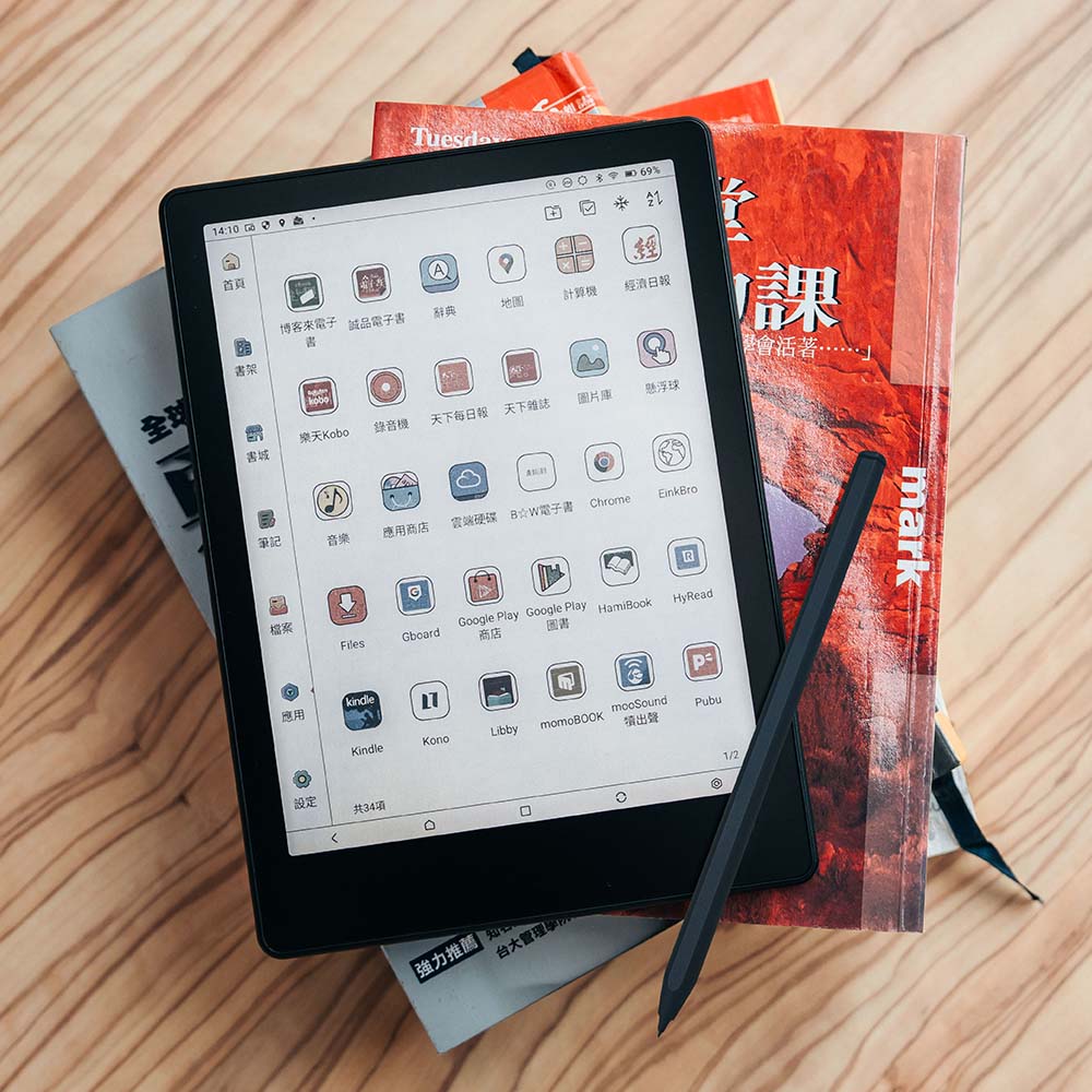 內容簡介 MEEBOOK M8C 7.8 吋彩色電子閱讀器絢彩更迷人MEEBOOK M8C 將彩色電子墨水技術融入閱讀生活,搭載 7.8 吋 Kaleido 3 (4096 色) 彩色電子紙顯示螢幕,色彩層次分明,讓每頁內容更富生命力。配備八核 2.2GHz CPU 和高效能 Android 14 系統,4GB RAM 64GB ROM,讓操作更順暢,輕鬆管理你的專屬數位圖書館。提供 24 級冷暖前光自由調節,打造隨時隨地的舒適閱讀氛圍。其彩色屏幕不僅展現文字的細緻,更能讓漫畫、雜誌和教材中的每一抹色彩鮮活呈現,帶來栩栩如生的視覺享受。Type-C 連接埠支援 OTG 及 1TB microSD 記憶卡擴充,擁有更靈活的存取與擴展空間。搭配 Wi-Fi 快速傳輸,3200mAh 電池持久續航,隨時隨地讀所愛的書籍。多彩呈現,閱讀不再單調全新 Kaleido 3 ( 4096 色 ) 彩色電子紙顯示螢幕,提升彩色圖像和文字的可讀性,同時仍保留電子墨水螢幕低耗電。透過改良的濾光片技術,提供更高對比度的色彩顯示,讓彩色內容 ( 如漫畫、雜誌和教材 ) 看起來更鮮明。色彩調節彩色閱讀器就像一個有魔法的畫家,根據不同的閱讀內容調整色彩的飽和度、對比度,讓畫面更符合使用者。貼近紙質,閱讀無界清晰字體、細膩圖像,M8C 電子閱讀器為您帶來如紙質般自然的閱讀體驗。防眩光通透顯示,無論在陽光下或夜晚,視覺舒適不妥協,盡享閱讀樂趣,讓知識無界延伸。MEEBOOK 獨家色彩增強技術獨家色彩增強技術,提升彩色電子書閱讀器的色彩顯示效果,結合硬體與軟體的優化,讓顯示的彩色內容更加鮮明、豐富且自然。 自定義色彩調節與多模式刷新,打造極致閱讀體驗透過自定義色彩調節設定,針對顏色對比度、鮮豔度、亮度、顏色深度,根據個人偏好或閱讀內容類型提供最符合個人的視覺饗宴。在黑白模式下黑白機的白底比較白,文字比較黑;彩色機的底比較灰濁,文字比較不銳利。設定刷新模式根據不同的使用場景調整,自由度更加符合使用者需求。MEEBOOK M8C 提供最佳的視覺效果,讓你隨時隨地享受高品質的閱讀樂趣。彩色殘影優化技術,翻頁更清晰比對普通刷新模式和極速刷新模式時,速度提升高達 20%。M8C 電磁手寫筆,手寫新體驗隨附 M8C 電磁手寫筆, 4096 級壓感,筆跡自然,在書寫時彷彿回到紙質筆記本的感受。將電子書閱讀器的功能擴展至專業筆記與創作。UI 桌面介面換新升級 側邊快捷工具設計,讓常用功能輕鬆點擊使用,更多桌面排版任你選擇。 輕鬆切換任務底部導航欄,設置變得更加輕鬆多樣化手勢控制操作更簡便直觀多種筆記模板,強化學習與資訊管理適合學生、專業人士,和終身學習者,以結構化又易於使用的格式來彙總心得、洞見、研究與想法。多種筆型和顏色選擇,隨心所欲創作根據需要自由切換筆型,例如鋼筆、圓珠筆、鉛筆等,搭配豐富的顏色選項,讓每一筆畫都更加生動,激發無限創意。全新的筆記功能全新的應用體驗 桌面資料夾,可以根據自己的需求和喜好,調整應用程式加入相應的資料夾中。 桌面布局,可以透過手動移動的方式,將需要的應用程式整理至桌面。 應用程式管理,可以將不常用的應用程式凍結,從而延長設備的電池壽命。最新高效能規格配備八核 CPU、4GB RAM 和 64GB 儲存空間,提供流暢敏捷的操作體驗。超低功效芯片,超長待機時間提供 3200mAh 待機 35 天,不需再擔心閱讀到一半沒有電力的窘境,或頻繁重複充電的煩惱。備註:此數據為 MEEBOOK 相關實驗室測試數值,實際數據會依照測試標準和環境不同,使用場景不同有所差異,及電池長時間使用後衰減等因素存在差異。滿足你對閱讀光線的偏好24 級冷暖前光可自由調整,冷暖雙色領域,調整出適合雙眼的閱讀燈效果。如紙質書般閱讀MEEBOOK M8C 結合電子書、瀏覽網頁、電子郵件、聽音樂等多元使用方式,根據自己的喜好進行配置;搭載 E Ink 純平高清墨水屏、雙色溫閱讀燈光源,可依環境調節雙色溫,有效降低藍光造成的傷害,與減少長時間使用 3C 設備的疲勞,即使在陽光下也無眩光,讓閱讀更加舒適。多種傳書方式,讀書更自由USB 傳書、藍牙傳書、Wi-Fi 傳書,在手機、電腦上的各類私藏書籍,可以自由的傳輸到閱讀器閱讀。連接你的無限可能配有藍牙裝置,搭配藍牙耳機或喇叭使用,安裝 Spotify、Google Play Music 應用程式,輕鬆聽取音樂。不只可以看書,還可以聽書,創造你的無限可能。配有 OTG 擴充裝置並支援 microSD 1TB,傳輸文件、交換資料更便利。USB 傳書、藍牙傳書、Wi-Fi 傳書,在手機、電腦上的各類私藏書籍,可以自由的傳輸到閱讀器閱讀。無須轉換,多種格式打開即讀M8C 支援各種格式檔案,直接打開無須轉換,立即閱讀。MEEBOOK 獨家閱讀系統 ZReader,享受浸泡式自在閱讀搭配 MEEBOOK 閱讀系統 ZReader,檔案多格式支援, PDF 專業優化:原創文字排版、多語言字體混合設置、閱讀進度顯示、個人閱讀調整;智能聽書,擬真人朗讀,內建 TTS 功能,圖書自動轉音頻,多種聲音與語速。