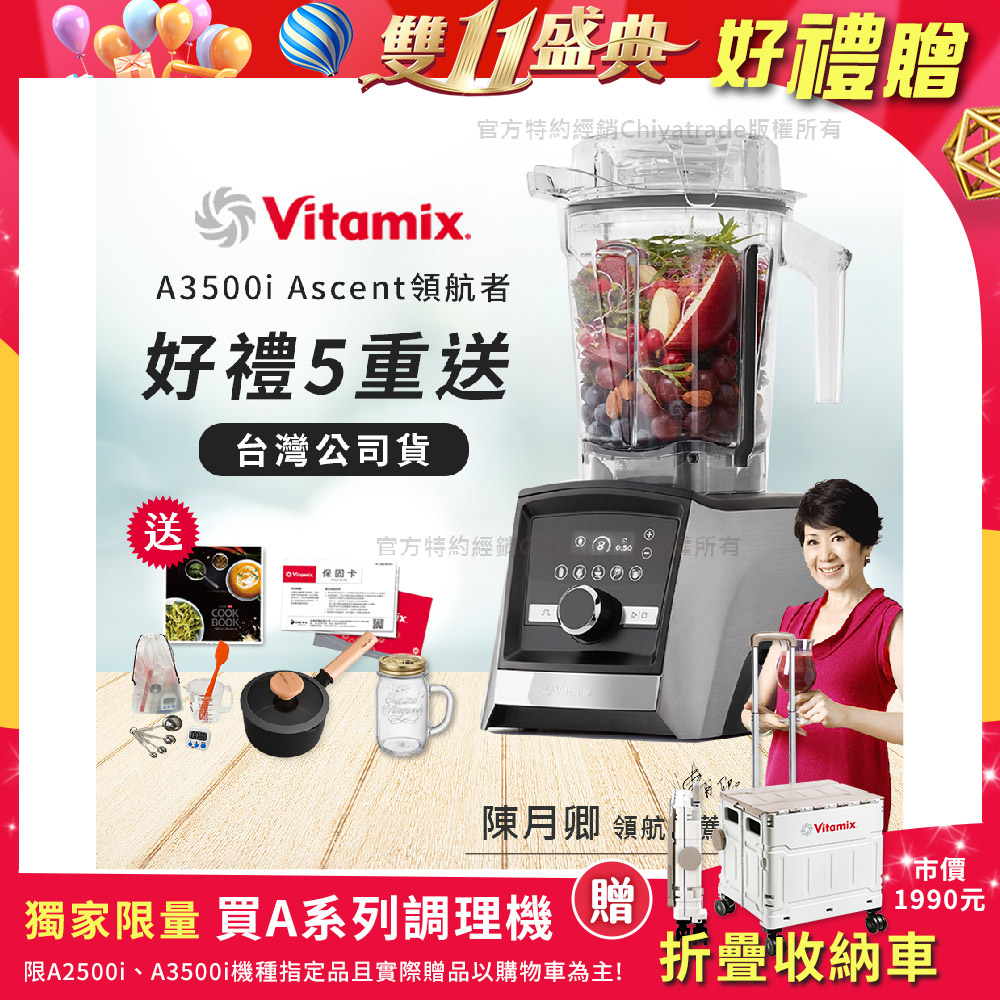 【美國Vitamix】Ascent領航者全食物調理機 智能x果汁機 尊爵級-A3500i-髮絲銀(官方公司貨)-陳月卿推薦 超值豪禮(工具組+悅味奶鍋16CM+義大利製冰沙杯)