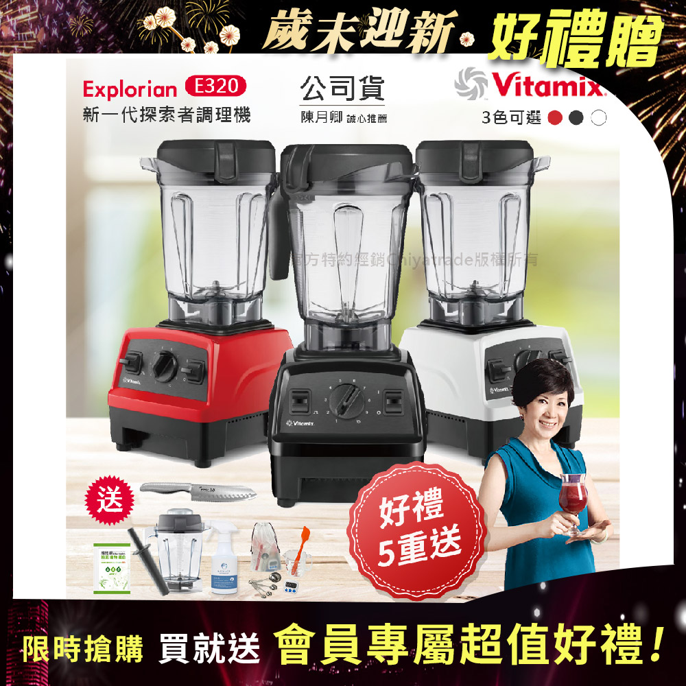 簡介 / 【美國Vitamix】E320 Explorian探索者調理機2.0+1.4L雙杯組 果汁機 養生綠拿鐵(官方公司貨)-陳月卿推薦 多重好禮(KIRA+日本不鏽鋼三德刀16.5CM+工具組+穀豆隨身包) 紅色: