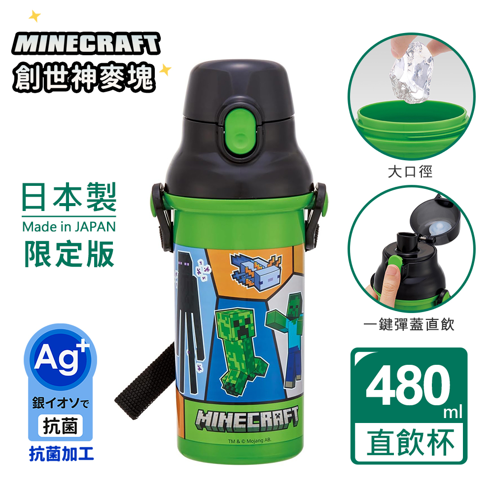 內容簡介 【商品說明】~Minecraft 麥塊~超人氣創世神,麥塊世界來趟新奇又奇幻的冒險吧!※本商品不提供試用。※本產品不建議裝熱飲,若堅持要裝熱飲請注意個人使用行為,以免造成燙傷。※請注意溫度過高不要直接飲用以免燙口,如需飲用時注意杯中飲品的溫度,為避免燙傷,請勿倒入熱飲。※孩童使用時請家長在旁協助,避免高溫飲品小心燙口。【商品特色】●日本製 正版授權●超輕量彈蓋直飲隨身壺●外出旅行、野餐出遊適用●Ag+銀離子抗菌加工●按壓彈蓋直飲式 寬口徑好放冰塊●附姓名貼紙、可拆式斜揹帶【商品規格】品牌:日本SKATER原廠公司貨-平行輸入材質:上蓋 PET飽和樹脂/耐熱溫度:100度 本體 聚丙烯 PP/耐熱溫度:120度容量:480ml重量:約146g(含包裝)(手量誤差±5%)尺寸:約底寬6.5x高21cm保存方式:置於乾燥處產地:日本 Made in Japan※可用洗碗機跟烘碗機。【注意事項】★因拍攝與實品略有色差,圖片僅供參考,請以實際收到商品為準。★本產品文案若有變動敬請參照實際商品為準。★請物放置於靠近火源處,請勿在微波爐中使用。★請用海綿或抹布清洗,勿用菜瓜布以免刮傷表面。★請確認將瓶蓋蓋好扣上並將瓶栓確實旋緊。★飲料量請倒至瓶栓下方約1公分處。★勿倒入碳酸類飲料,易因飲料產生之氣體膨脹導致上蓋不易密合致使內容物外漏。★請避免摔落或撞擊導致產品受損。★請勿當玩具,本產品是水壺。★請勿讓無法獨立使用之孩童單獨使用。★使用背帶時,需自行注意安全使用。※警告:請確實遵守產品使用說明並請小心謹慎的使用,以避免不正當使用或個人因素可能引起之財物損失及對個人的傷害。
