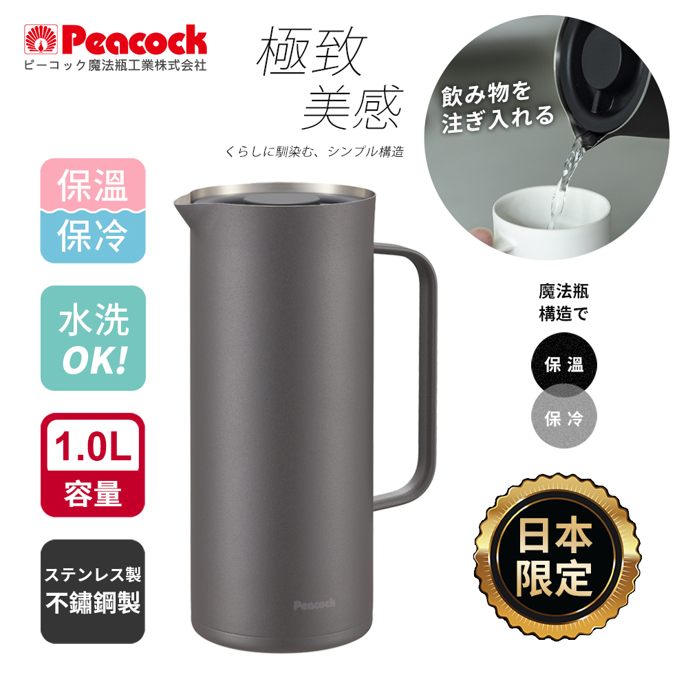 內容簡介 【商品說明】※請特別注意,由於上蓋為非密閉式設計,所以即使上蓋關閉的狀態傾倒水壺,壺中的飲品還是會有洩漏的情形。若上蓋關得過緊,將不容易打開!※閉合時請勿過於緊密因適當即可,必免熱氣壓力倒置轉不開。※本壺請勿傾倒放置,若傾倒會些微滲漏為正常狀況,為避免壓力造成無法開啟,本身設計如此為正常現象非瑕疵。【商品特色】不鏽鋼真空絕熱結構可阻隔外界空氣溫度,因此具有優良的保溫、保冷性能。容器的廣口設計,直徑約7.6cm,方便放入飲料和大冰塊,壺身可以徹底清洗。非常適合作為家庭、辦公室、營地、戶外、休閒、野餐、餐廳、咖啡店的水壺。【保溫瓶的選購】選購保溫瓶時,價格並不是第一考量。因為我們想要真正地享受瓶中的冷飲或熱飲,材質的安全更關乎我們的健康;有些低價的市售產品沒有精密的保溫技術,往往在保溫效果上也會大打折扣,並且可能含有如重金屬之類的對人體有害物質。選購時,要考量材質、技術,以及具品牌的保溫瓶,它不僅能確保您的冷飲或熱飲的保溫時間更長,還能確保產品更長的使用壽命。日本孔雀Peacock母公司於1923年創立於大阪,從事保溫瓶生產。與虎牌、象印牌同為日本保溫產品協會成員。日本孔雀,百年的匠心質造,有情懷有態度,成就百年品牌,值得您安心使用。【商品規格】容量:1.0(L)口徑:76(mm)商品尺寸:約98x148x234(mm)包裝尺寸:約105x136x242(mm)重量:本體約0.8(kg)、含包裝約0.89(kg)材質:內瓶-不鏽鋼SUS304 外瓶-不鏽鋼SUS304 (丙烯樹脂噴塗) 瓶口-不鏽鋼 SUS304 螺旋塞-聚丙烯樹脂 密封圈-矽膠保溫效力:10小時64℃以上保冷效力:10小時10℃以下產地:日本孔雀-中國廠【注意事項】※商品圖檔顏色因電腦螢幕設定差異會略有不同,以實際商品顏色為準,敬請見諒※本產品文案若有變動敬請參照實際商品為準※請特別注意,由於上蓋為非密閉式設計,所以即使上蓋關閉的狀態傾倒水壺,壺中的飲品還是會有洩漏的情形。若上蓋關得過緊,將不容易打開!※閉合時請勿過於緊密因適當即可,必免熱氣壓力倒置轉不開。※壺請勿傾倒放置,若傾倒會些微滲漏為正常狀況,為避免壓力造成無法開啟,本身設計如此為正常現象非瑕疵。不要放乾冰或碳酸飲料請勿將本產品置於火源附近 請勿將本產品置放於幼兒易於拿取的地方請勿浸泡清洗或放入洗碗機中清洗請勿使用烘碗機※保冷產品也可以達到保溫效果,因為保溫、保冷產品杯體真空結構是一樣的。真空技術越高,產品性能越好。孔雀產品銷往全球,均嚴守日本質量標準規定。※若為保冷專用瓶,亦可做為保溫瓶使用,但請注意溫度過高不要直接飲用以免燙口,如需飲用時注意杯中飲品的溫度。