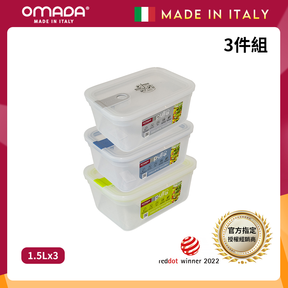 【OMADA】義大利製 主廚CHEF 易拉 保鮮盒1.5L(超值三件組) 灰+藍+綠 | 誠品線上