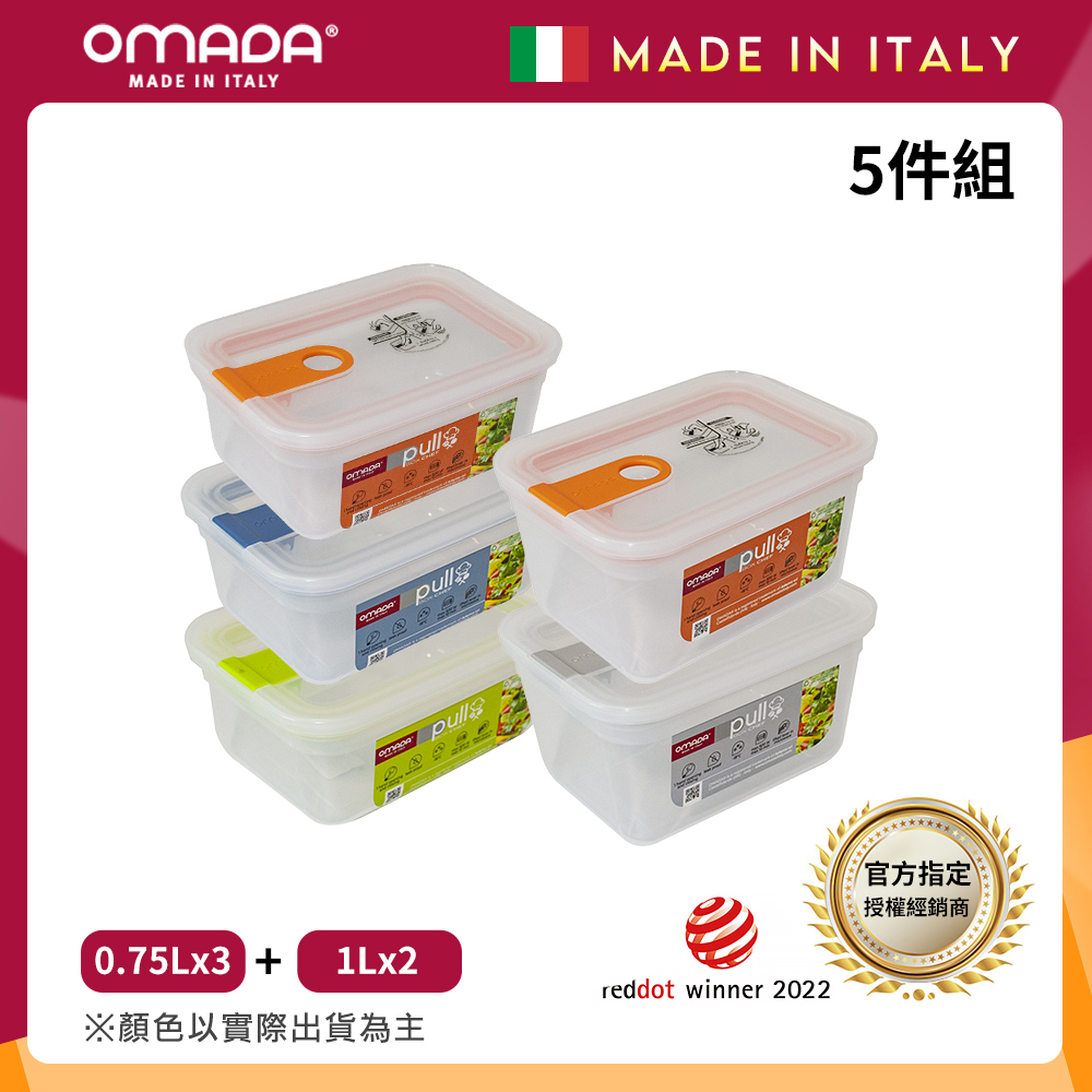 【OMADA】義大利製 主廚CHEF 易拉 保鮮盒0.75Lx3+1Lx2(實用五件組) 隨機混色