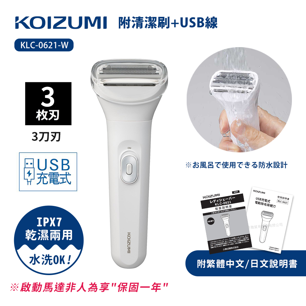【日本小泉KOIZUMI】USB充電式 乾濕兩用 防水電動除毛 得體刀 防水設計(贈清潔刷+充電線)-白