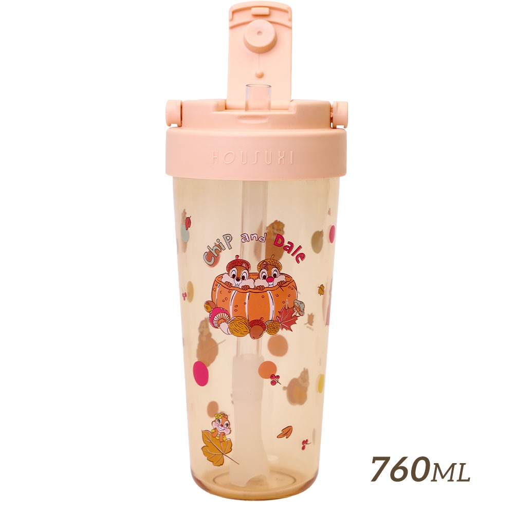 HOUSUXI迪士尼奇奇蒂蒂Tritan輕透舒吸杯 附彈跳吸管 760ml
