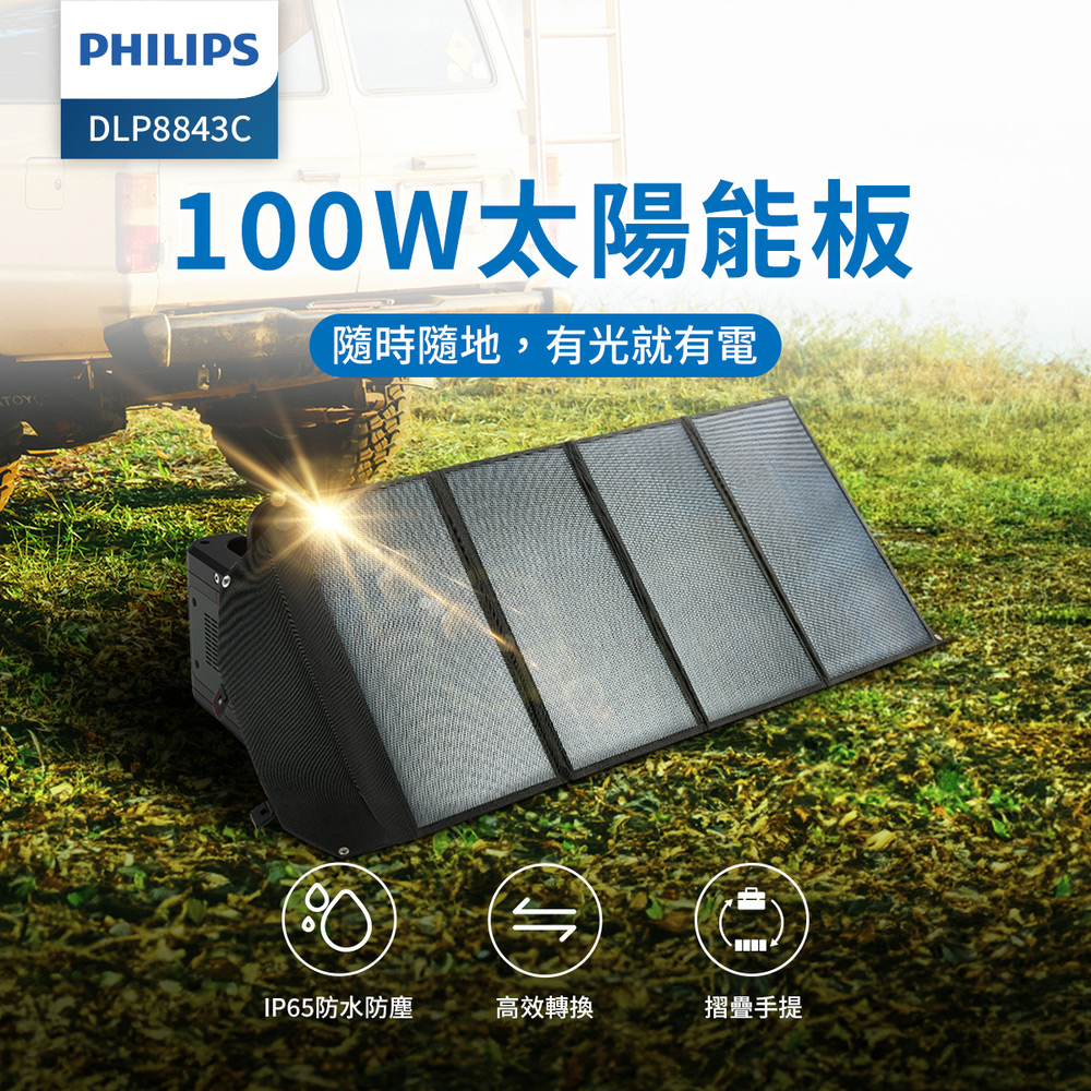【Philips 飛利浦】露營 戶外 車宿 100W大功率 折疊太陽能充電板 DLP8843C