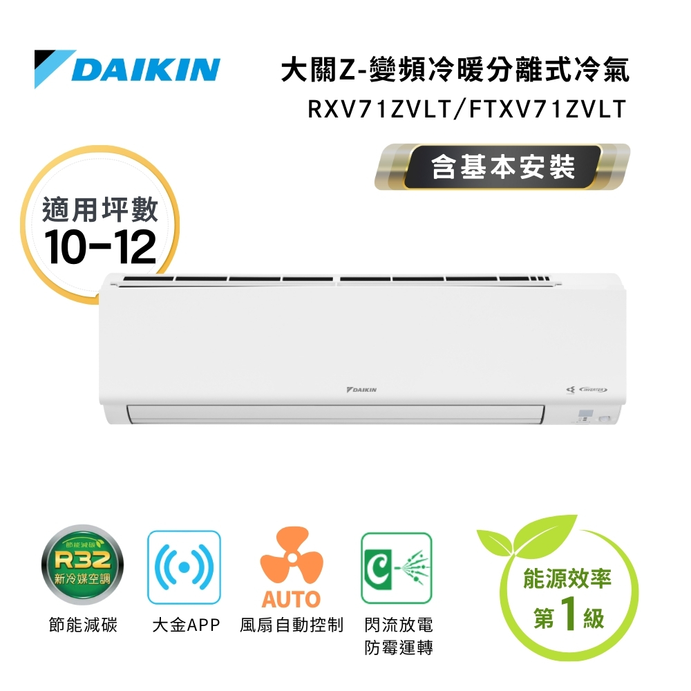 【DAIKIN 大金】一級節能 10-12坪 大關Z系列 變頻分離式空調 RXV71ZVLT FTXV71ZVLT