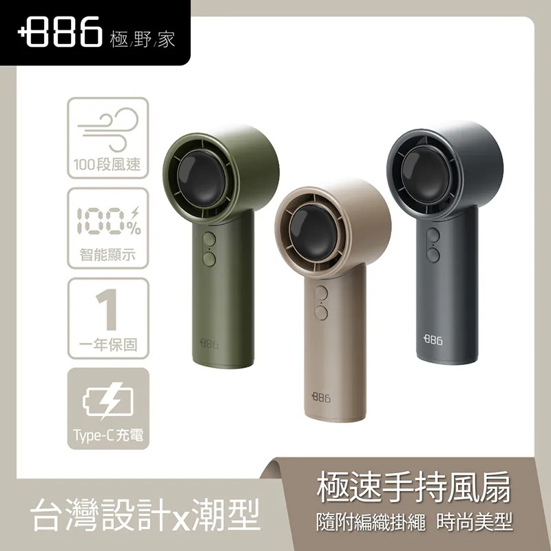+886[極野家]極速手持風扇 智能顯示 100段位風速 隨附掛繩 奶茶棕