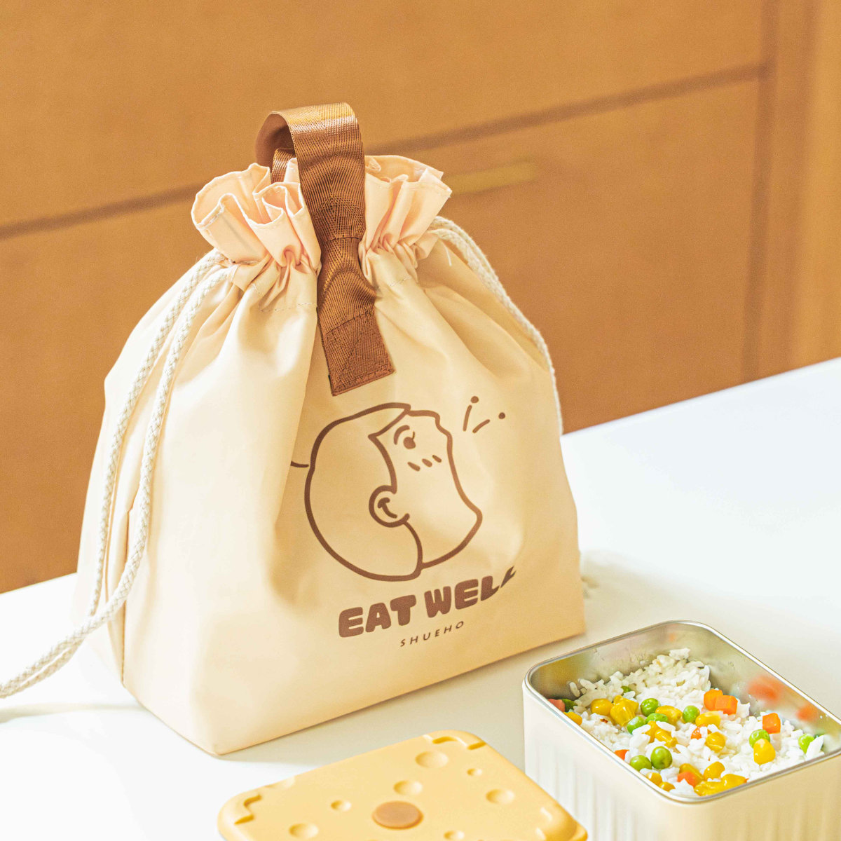 內容簡介 ✅原創設計 ✅防水保溫 ✅寬大容量日常帶飯,也需要很可愛!好好食保溫便當袋主體採三層隔熱設計,外層高密度牛津布,內層鋁箔層,中間再填入珍珠棉,整體做到防潑水又保溫。容量夠大,可放兩個飯盒(1000ml+600ml)、一瓶紙盒牛奶與一組餐具盒,從容帶齊。底部定型平穩,物品不易傾倒,抽繩開口大、收納順手。袋型挺拔,搭配大口君插畫,無論上班、上學或野餐都好看又實用。看起來不像便當袋,提著出門也不違和,除了通勤帶飯,當日常手提袋也很可以。一點小改變,讓生活多一點講究。便當袋也可以很講究!● 三層結構設計,保溫也保冷● 外層牛津布,防潑水好清潔● 內層鋁箔膜,防油抗污不殘留● 抽繩開口設計,收納快速順手※三層結構設計・外層牛津布・內層鋁箔・中間填入珍珠棉※容量充足,可放:・兩個便當盒(1000ml+600ml)・一瓶紙盒牛奶・一組餐具盒底部定型不易傾倒,抽繩開口大、收納順手。搭配大口君插畫,通勤、上學、野餐都實用又好看!
