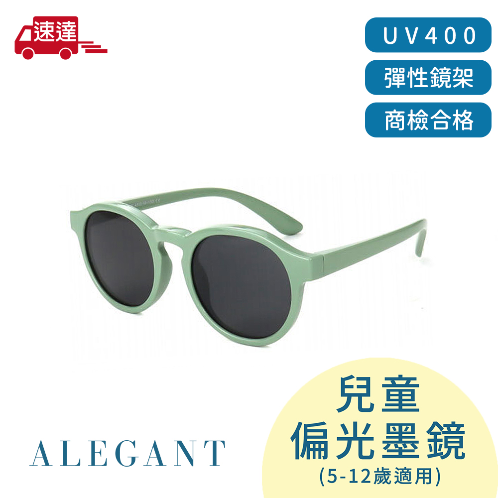 ALEGANT繽紛時尚兒童專用輕量矽膠彈性太陽眼鏡 UV400圓框偏光墨鏡 薄荷綠