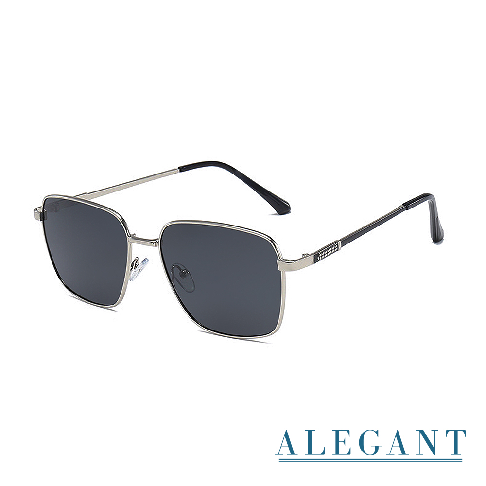 | 商品名 / | ALEGANT中性時尚方框寶麗來偏光墨鏡 UV400太陽眼鏡 銀翼黑 |