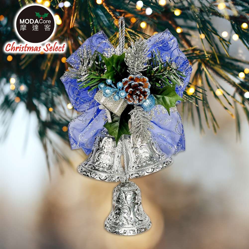 | 商品名 / | 摩達客-台灣製 聖誕藍銀系松果禮物盒3吋三花鐘精緻吊飾-台灣設計工藝 |