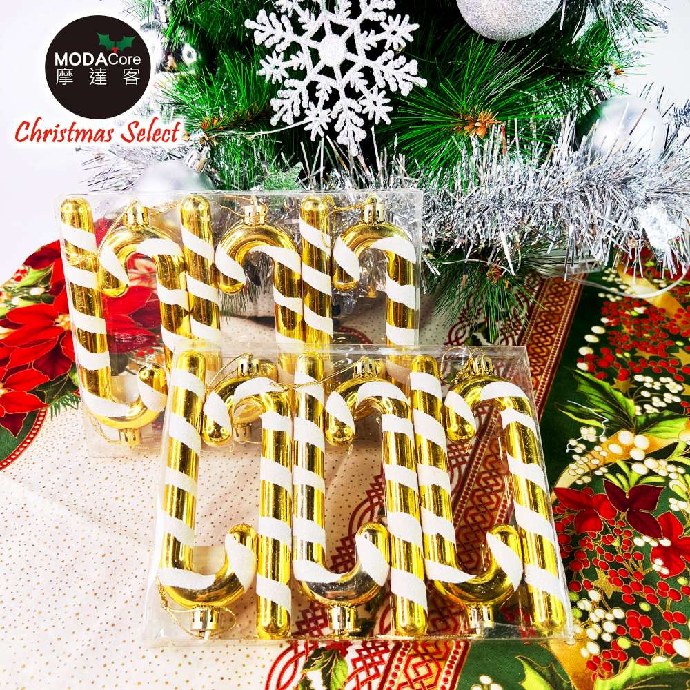 摩達客耶誕-12.5CM彩繪電鍍糖果拐杖12入吊飾組(金色系)聖誕樹裝飾球飾掛飾