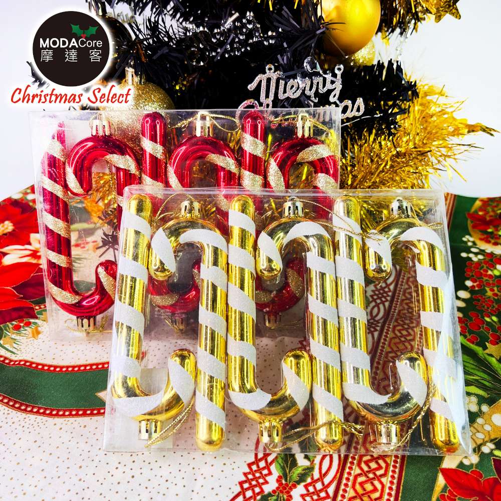 摩達客耶誕-12.5CM彩繪電鍍糖果拐杖12入吊飾組(紅+金色各六入)聖誕樹裝飾球飾掛飾