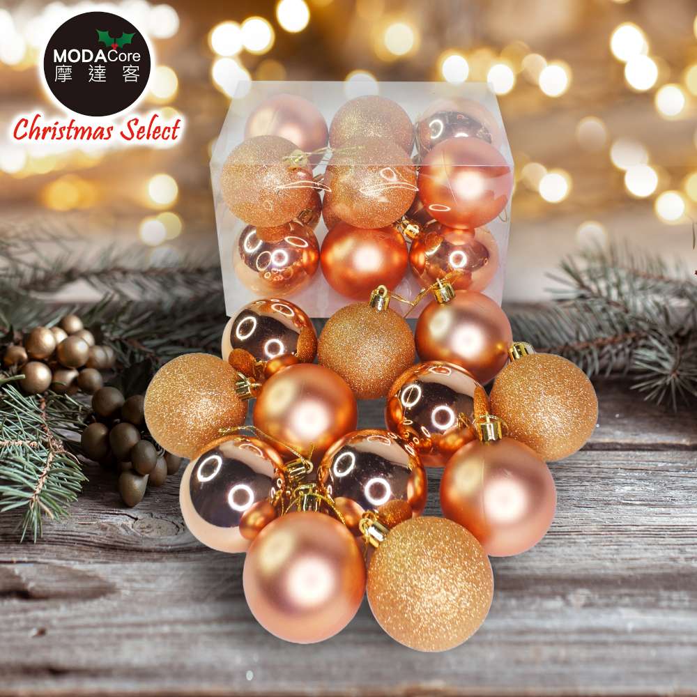 摩達客耶誕-50mm(5CM)霧亮混款電鍍球24入吊飾組(香檳粉金系) 聖誕樹裝飾球飾掛飾