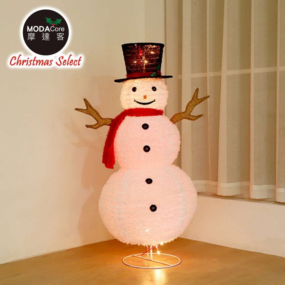| 簡介 / | 摩達客聖誕-小型LED燈白色絨毛彈簧摺疊雪人玩偶擺飾(100燈LED燈暖白光USB充電):▶40餘年歐美聖誕外銷專業經驗▶台灣品牌|台灣設計|台灣聖誕首選▶歐美經典風格首選|裝飾品 |