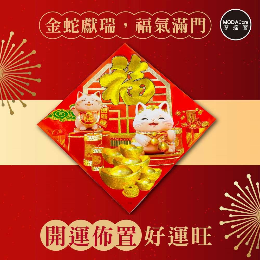 摩達客◉春節開運招財◉刺繡皮革燙金福字招財貓斗方-單片春聯