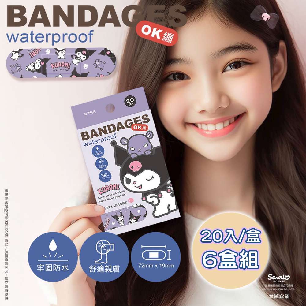 【台歐】三麗鷗 KUROMI 酷洛米 聯名款OK繃傷口貼 20入 盒*6盒-摩達客推薦