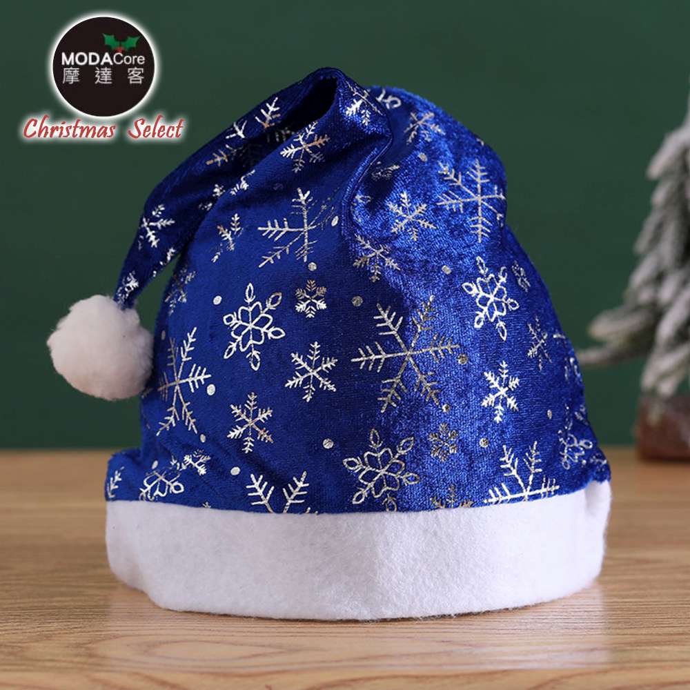 摩達客耶誕-聖誕派對藍色燙銀絲絨聖誕帽