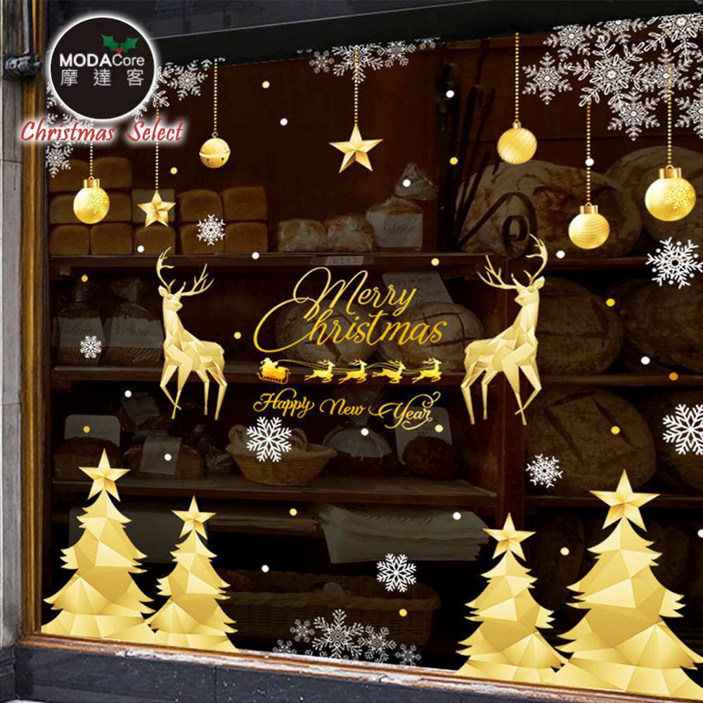 | 商品名 / | 摩達客耶誕-金色4號聖誕麋鹿雪景-無痕窗貼玻璃貼*2入優惠組合 |