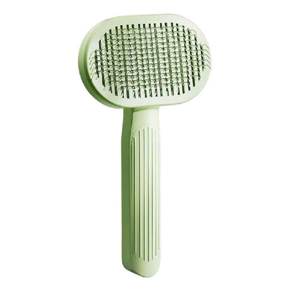 【摩達客寵物】馬卡龍系橢圓貓耳按壓式美容圓珠針梳理毛梳(犬貓通用) 綠色