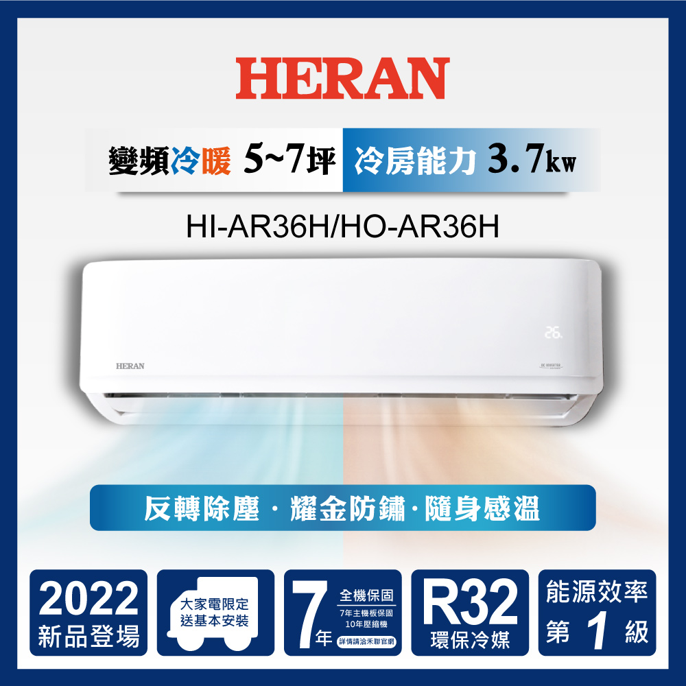 | 商品描述 | 【官方直營】HERAN禾聯 4-6坪R32耀金防鏽一級變頻冷暖空調HI HO-AR36H 含基本運送+拆箱定位+舊機回收:增添反轉除塵技術減緩外機髒污銀離子抗菌濾網/升級耀金防鏽延長機體 |