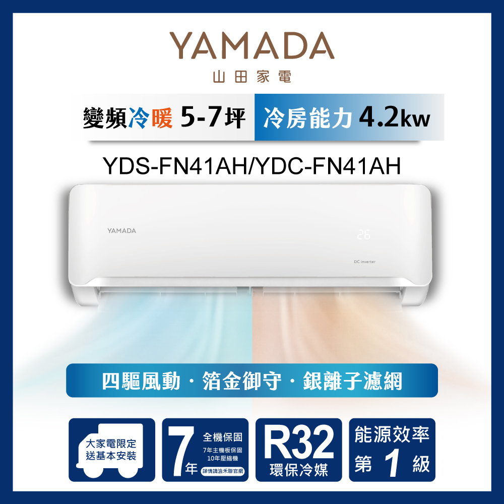 【官方直營】YAMADA 山田家電5-7坪R32一級變頻分離式冷暖空調 YDS YDC-FN41AH 含基本安裝+舊機回收