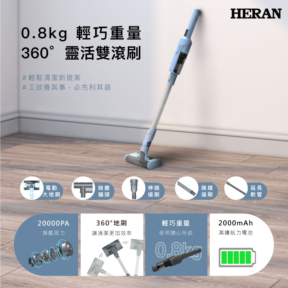 商品描述 | 【限量尾數機下殺】HERAN禾聯 360°多指向雙滾刷無線手持吸塵器(HVC-25SCG5B):●高效無刷馬達●旋風集塵離心系統●360°多指向清潔●雙絨毛電動滾刷●輕量化設計●2000mAh高 |