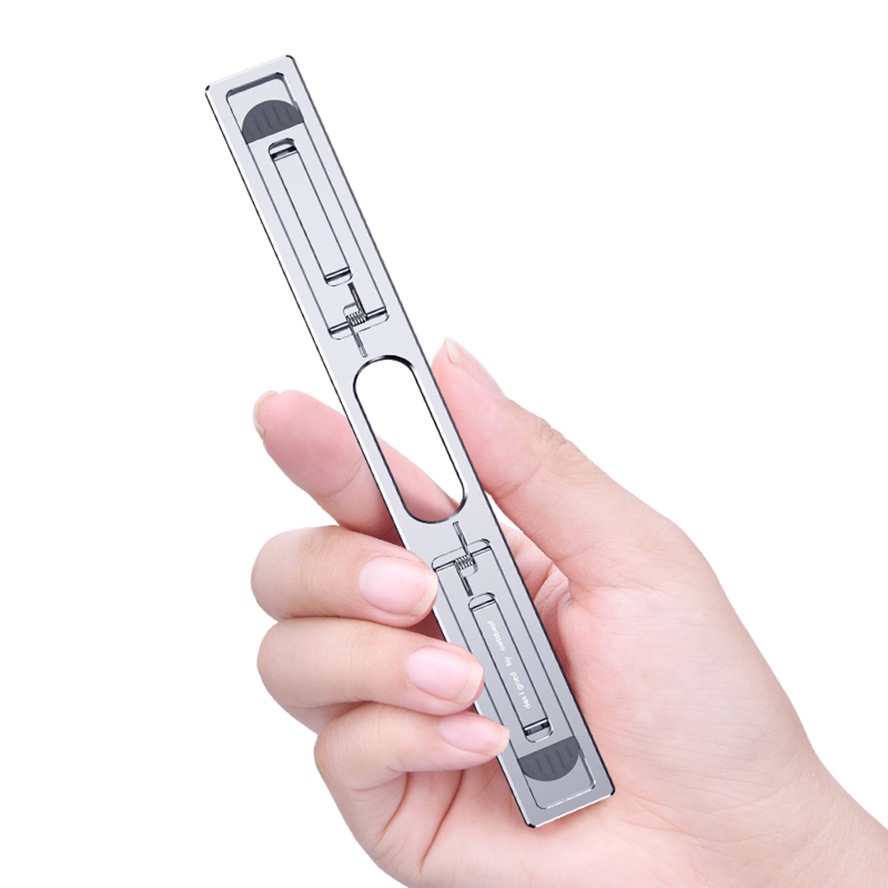 內容簡介 ■隱形筆電支架不占空間■一體式設計輕巧便攜■四檔調節 舒適視角體驗■改善視角角度緩解疲勞■傾斜設計利於機器散熱■金屬材質 質感更加分名稱:K01隱形筆電支架尺寸:224x22x5mm顏色:銀色 深空灰重量:52g材質:鋁合金+防滑膠墊適用產品:筆電、平板、鍵盤
