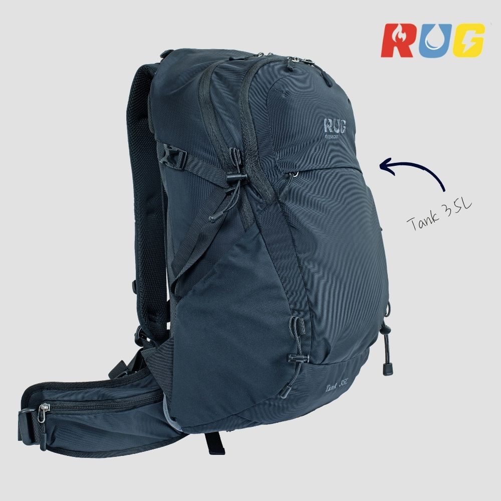 商品描述 | 【RUG】Tank 35L 多功能透氣健行背包 黑色 (登山背包 中裝 健行背包):.多功能前置收納袋,大容量並內建分隔空間,提升整理效率。.前方直拉鍊收納袋,方便快速取用常用裝 |
