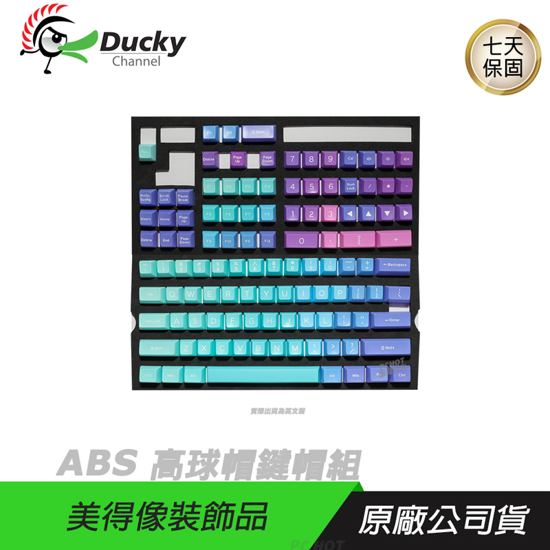 商品名 / | Ducky ABS 高球帽鍵帽組 英文版 日暮 蔚藍 ABS 二色成形不破孔鍵帽 雙色字樣鍵帽組 蔚藍 |