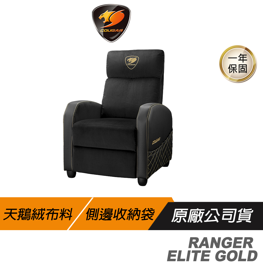 COUGAR 美洲獅 RANGER ELITE GOLD 電競沙發 電競椅 單人沙發 天鵝絨布料 側邊收納袋 三段式傾斜