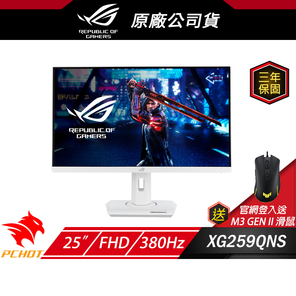 內容簡介 ▶️產品規格型號: ROG Strix XG259QNS螢幕面板尺寸 (吋):24.5長寬比:16:9顯示畫面尺寸(水平x垂直):543.168 x 302.616 mm顯示面板:Anti-Glare背光類型:LED面板類型:Fast IPS可視角度 (CR≧10, H V):178° 178°像素間距:0.2829mm x 0.2802mm解析度:1920x1080色彩飽和度 (sRGB):110%亮度 (HDR, Peak):400 cd ㎡對比率(Typ.) :1000:1顯示色彩:16.7M反應時間:1ms(GTG), 0.3ms(min.)畫面更新率 (最大值):380Hz支援 HDR (高動態範圍):HDR10不閃屏技術:Yes影像特色Trace Free 無殘影技術:YesGameVisual 模式 :Yes色溫選擇:Yes(4 modes)GamePlus :Yes支援HDCP:YesELMB Sync: 支援可變更新率 (VRR):Yes (Adaptive-Sync)GameFast Input technology :有Shadow Boost :Yes應用軟體 DisplayWidget :Yes, DisplayWidget Center低藍光模式:支援多種HDR模式:Yes聲音特色揚聲器:NoI O 連接埠DisplayPort 1.4x 1 (HBR3)HDMI(v2.0)x 2 USB Hub:2x USB 3.2 Gen 1 Type-A耳機插孔:Yes訊號頻率數位訊號頻率:HDMI: 27~292 KHz (H) 48~240 Hz (V)DP (OC): 470~470 KHz (H) 60~380 Hz (V)耗電量電源開啟(Typical):<14.36W省電模式:<0.5W電源關閉模式 :<0.3W電壓:100-240V, 50 60Hz機構設計前後傾斜:Yes (+20° ~ -5°)左右旋轉:Yes (+45° ~ -45°)上下旋轉:Yes (+90° ~ -90°)高度調整:0~120mmVESA 牆掛:100x100mmKensington 防盜鎖孔:Yes1 4" Tripod Socket : Yes產品尺寸實體 裝上底座的尺寸(寬x高x深):55.8 x 49.2 x 21.8 cm (21.97" x 19.37" x 8.58")實體 不含底座尺寸 (寬 x 高 x 深):55.8 x 33.2 x 5.9 cm (21.97" x 13.07" x 2.32")外箱尺寸 (寬 x 高 x 深):79.5 x 48.2 x 17.2 cm (31.30" x 18.98" x 6.77")重量(預估):淨重:5.58 kg (12.30 lbs)淨重不含底座:2.92 kg (6.44 lbs)毛重:7.76 kg (17.11 lbs)配件:DisplayPort cablePower adapterPower cordQuick release standQuick start guideROG pouchROG stickerWarranty Card安規認證:TÜV Flicker-freeTÜV Low Blue LightVESA AdaptiveSync Display 380HzVESA DisplayHDR 400 AMD FreeSync Premium產地 台灣BSMI R31018NCC 無▶️注意事項⚠️賣場商品之詳細規格請依照官網為主⚠️商品皆由原廠直接指定廠商寄出,配送約2-3個工作天(假日除外)⚠️因各家物流皆不相同,若本島偏遠地區、外島需額外加收運費時,將於下單後另行通知⚠️物流配送僅送至1樓,若配送地址之場所無設立電梯,需自行搬上樓⚠️商品到貨當日起享15天鑑賞(猶豫)期之權益 【注意!鑑賞期非試用期】⚠️拆封時請全程錄影以確保自身權益!外箱破損、封口不平整請勿收件⚠️產品無瑕疵、無故障,但已拆封使用,因個人因素、喜好之原因而退貨,會酌收整新費用(最高30%)⚠️大型商品到府組裝需當場確認商品是否有無瑕疵,避免售後爭議