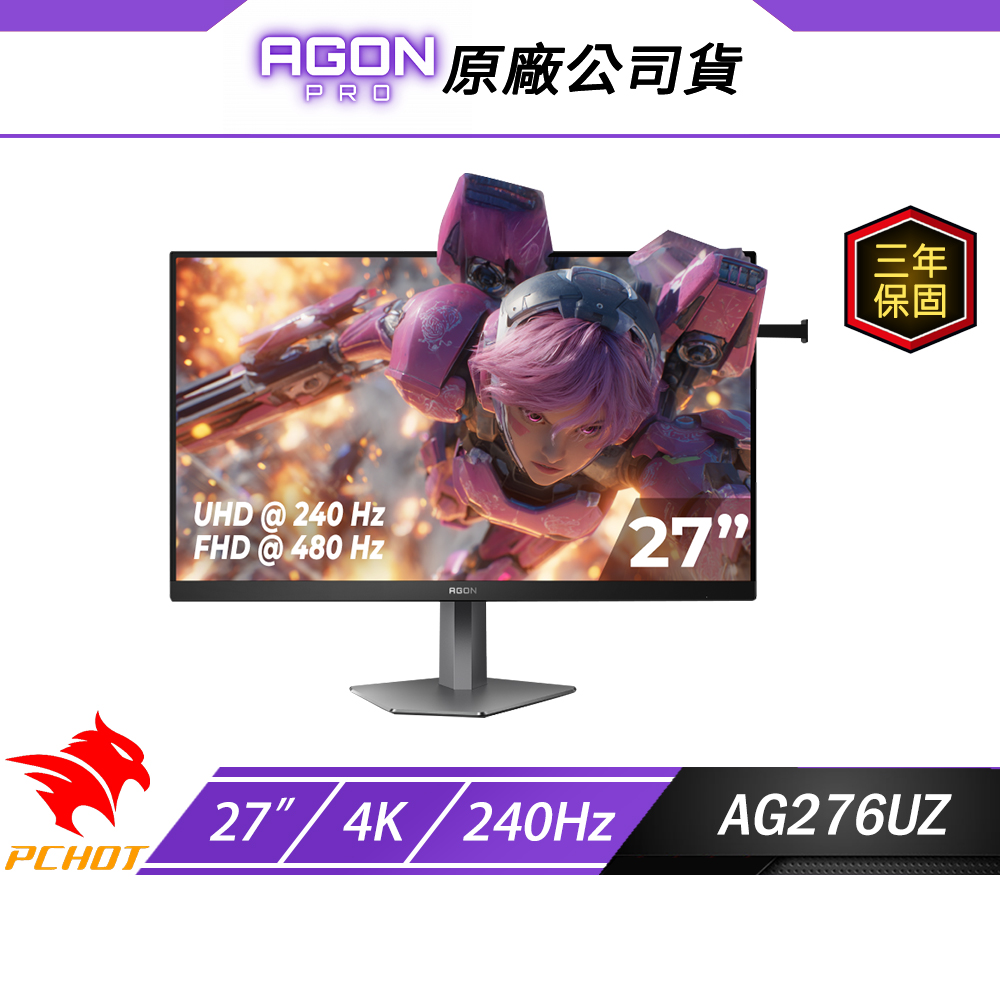 內容簡介 ▶️產品規格產品型號:AG276UZ國際條碼(EAN碼):6973985233296面板尺寸:27" (Fast IPS)像素(mm): 0.15525 (H) x 0.15525 (V)有效視區(mm):596.736 (H) x 335.664 (V)亮度:450 cd m2動態對比度:1100 :1 MEGA DCR反應時間:1ms (GtG) 0.3ms MPRT可視角度(水平 垂直):178 (H) 178 (V) (CR > 10)色域:sRGB 138% (CIE1931) DCI-P3 103% (CIE1976)色彩準確性:Delta E < 1最佳解析度:3840 x [email protected], H DMI2.1+DSC1920 x 1080@480Hz-DisplayPort21, HDMI2.1顯示色數:1.07 Billion訊號輸入:HDMI 2.1 x 2, DisplayPort 2.1 x 1HDCP版本:HDMI:22 DisplayPort:2.2配件:PWR HDMI DPUSB接口:USB 3.2 Genl x 2電源:20VDC, 4.5A功耗(典型):37W輸入和耳機:Earphone x 1壁掛:100mm x 100mm可調式支架:Height: 130mm, Pivot: -909 ~ 90%,Swivel: -20 ~ 209, Tilt: -59~200不含底座產品尺寸(mm):366.6 (H) X 613.7 (W) x 85.1 (D)含底座產品尺寸(mm):405.9~535.9 (H) X 613.7 (W) X 240.0 (D)包装尺寸(mm):436 (H) x 730 (W) x 188 (D)不含底座產品重量(kg):4.90含底座產品重量(kg):6.20含包装重量(kg):10.60顏色:Black&Grey法規認證:CE FCC RoHS產地 台灣BSMI R33037NCC 無▶️注意事項⚠️賣場商品之詳細規格請依照官網為主⚠️商品皆由原廠直接指定廠商寄出,配送約2-3個工作天(假日除外)⚠️因各家物流皆不相同,若本島偏遠地區、外島需額外加收運費時,將於下單後另行通知⚠️物流配送僅送至1樓,若配送地址之場所無設立電梯,需自行搬上樓⚠️商品到貨當日起享15天鑑賞(猶豫)期之權益 【注意!鑑賞期非試用期】⚠️拆封時請全程錄影以確保自身權益!外箱破損、封口不平整請勿收件⚠️產品無瑕疵、無故障,但已拆封使用,因個人因素、喜好之原因而退貨,會酌收整新費用(最高30%)⚠️大型商品到府組裝需當場確認商品是否有無瑕疵,避免售後爭議