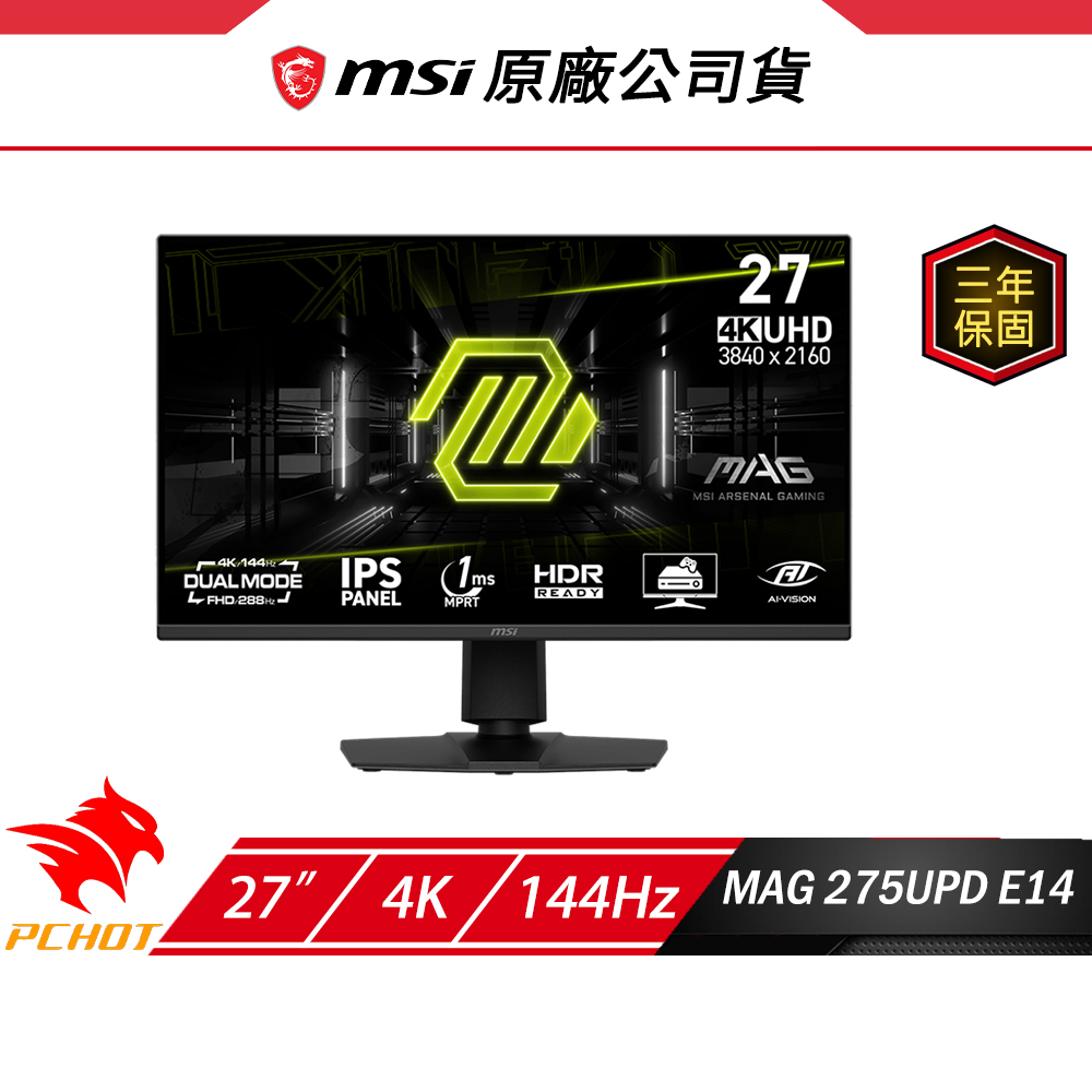 內容簡介 ▶️產品規格面板尺寸: 27"顯示區域(MM) : 596.736 (H) x 335.664 (V)曲面螢幕: Flat面板類型: IPS最佳解析度: Normal: 3840 x 2160 (UHD)Dual Mode: 1920 x 1080 (FHD)像素 (H x V) : 0.1554 (H) x 0.1554 (V)螢幕比例: 16:9亮度: SDR: 250 cd m²靜態對比度: 1500:1 (Typ.)動態對比度(DCR) : 100000000:1訊號頻率: UHD : 106.1~318.2KHz (H) 48~144Hz (V)FHD : 106.1~318.2KHz (H) 48~288Hz (V)更新頻率: Normal: 144HzDual Mode: 288Hz動態刷新率技術: Adaptive-Sync支援HDR: HDR Ready影像連接埠: 1 x DisplayPort 1.4a (HBR3)2 x HDMI™ 2.1 (4K@144Hz)音頻接孔: 1x Headphone-out可視角度: 178° (H) 178° (V)Adobe RGB DCI-P3 sRGB: 84% 90% 130% (CIE1976 Standard)表面處理: Anti-glare色彩顯示: 1.07B, 10 bits (8 bits + FRC)電源輸入: 100~240V, 50 60Hz調整 (高度) : 0~130 mm肯辛頓鎖孔: Yes紙箱尺寸 (寬X深X高) : 810 x 150 x 462mm(31.8 x 5.9 x 18.1 inch)VESA安裝: 100 x 100 mm刷新率範圍: Normal: 48~144HzDual Mode: 48~288HzSPEAKER: 2W x2Adjustment (仰角) : -5° ~ 20°Console Mode: Supported Resolution & Refresh Rate:1080p: 60Hz and 120Hz1440p: 60Hz and 120Hz2160p: 60Hz and 120HzHDMI™ CEC: SupportedVRR: PS5 and Xbox SupportedDimension with Stand (W x D x H) : 613.3 x 227.9 x 534.2mm(24.1 x 8.9 x 21.1 inch)Dimension without Stand (W x D x H) : 613.3 x 57.9 x 360.7mm(24.1 x 2.2 x 14.3 inch)重量 (NW GW) : 6.1 kg (13.4lbs) 8.7 kg (19.1 lbs)備註: HDMI™: Normal (UHD) : 3840 x 2160 (Up to 144Hz)Dual (FHD) : 1920 x 1080 (Up to 288Hz)DisplayPort: Normal (UHD) : 3840 x 2160 (Up to 144Hz)Dual (FHD) : 1920 x 1080 (Up to 288Hz)Support: HDMI™ CEC, PIP PBP; Non Support: KVMAccessories: 1x DisplayPort Cable (1.4a), 1x Power Cord (C13), 1x Quick Guide產地 台灣BSMI R33008NCC 無▶️注意事項⚠️賣場商品之詳細規格請依照官網為主⚠️商品皆由原廠直接指定廠商寄出,配送約2-3個工作天(假日除外)⚠️因各家物流皆不相同,若本島偏遠地區、外島需額外加收運費時,將於下單後另行通知⚠️物流配送僅送至1樓,若配送地址之場所無設立電梯,需自行搬上樓⚠️商品到貨當日起享15天鑑賞(猶豫)期之權益 【注意!鑑賞期非試用期】⚠️拆封時請全程錄影以確保自身權益!外箱破損、封口不平整請勿收件⚠️產品無瑕疵、無故障,但已拆封使用,因個人因素、喜好之原因而退貨,會酌收整新費用(最高30%)⚠️大型商品到府組裝需當場確認商品是否有無瑕疵,避免售後爭議