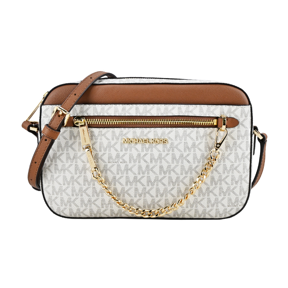 MICHAEL KORS JET SET掛鍊防刮斜背相機包-大 多色選 平行輸入 滿版米