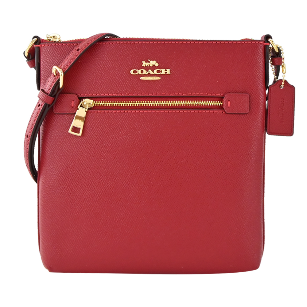 | 商品名 / | COACH ROWAN 前口袋拉鍊素面防刮皮革斜背方包(迷你 多色選) 平行輸入 復古紅 |