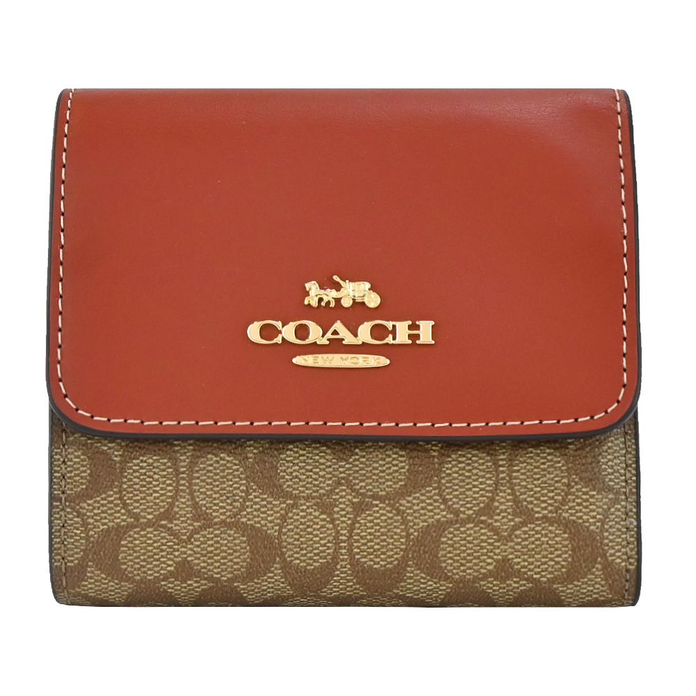 | 商品名 / | COACH 立體馬車LOGO 皮革拼接PVC三折短夾(多色選) 平行輸入 棕X卡其 |